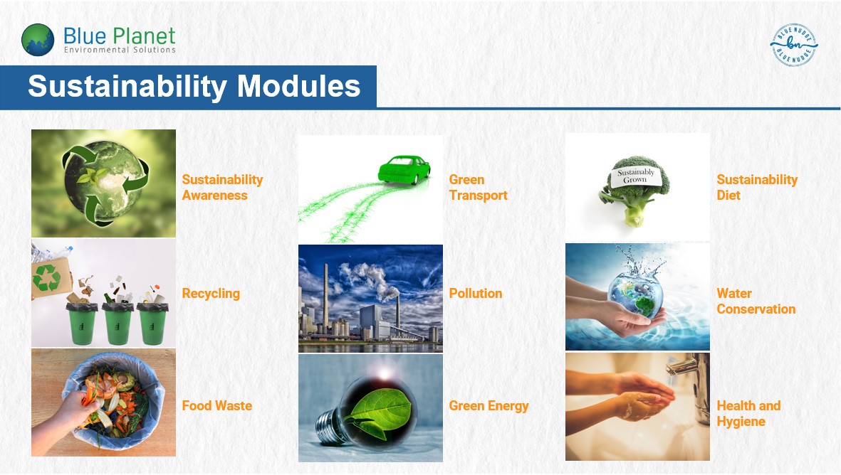 Blue Nudge Modules on sustainability are self-paced online modules designed for schools. Students are given access to the Modules upon collecting the required amount of paper waste.